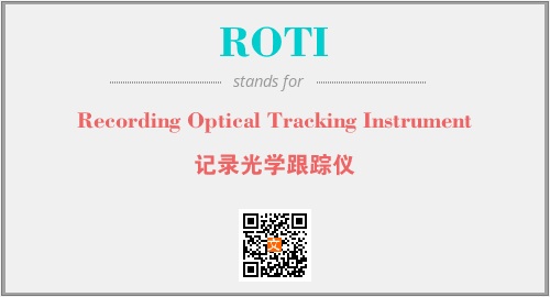 上述内容是“Recording Optical Tracking Instrument”作为“ROTI”的缩写,解释为“记录光学跟踪仪”时的信息,以及英文缩略词ROTI所代表的英文单词,其对应的中文拼音、详细解释以及在英文中的流行度和相关分类、应用领域及应用示例等。
