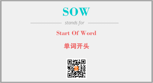 英文缩略词“SOW”经常作为“Start Of Word”的英文缩写来使用,中文表示:“单词开头”。本文将详细介绍英文缩写词SOW所代表英文单词,其对应的中文拼音、详细解释以及在英语中的流行度。此外,还有关于缩略词SOW的分类、应用领域及相关应用示例等。