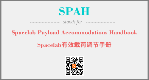 上述内容是“Spacelab Payload Accommodations Handbook”作为“SPAH”的缩写,解释为“Spacelab有效载荷调节手册”时的信息,以及英文缩略词SPAH所代表的英文单词,其对应的中文拼音、详细解释以及在英文中的流行度和相关分类、应用领域及应用示例等。