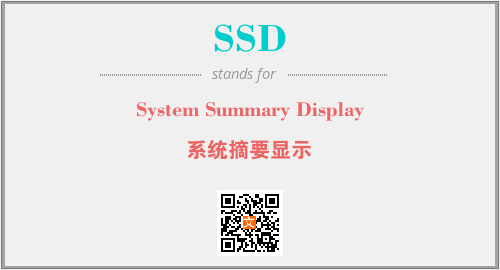 英文缩略词“SSD”经常作为“System Summary Display”的英文缩写来使用,中文表示:“系统摘要显示”。本文将详细介绍英文缩写词SSD所代表英文单词,其对应的中文拼音、详细解释以及在英语中的流行度。此外,还有关于缩略词SSD的分类、应用领域及相关应用示例等。