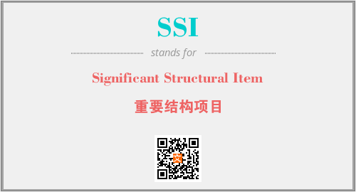 英文缩略词“SSI”经常作为“Significant Structural Item”的英文缩写来使用,中文表示:“重要结构项目”。本文将详细介绍英文缩写词SSI所代表英文单词,其对应的中文拼音、详细解释以及在英语中的流行度。此外,还有关于缩略词SSI的分类、应用领域及相关应用示例等。