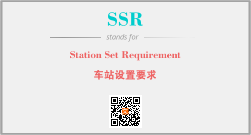 英文缩略词“SSR”经常作为“Station Set Requirement”的英文缩写来使用,中文表示:“车站设置要求”。本文将详细介绍英文缩写词SSR所代表英文单词,其对应的中文拼音、详细解释以及在英语中的流行度。此外,还有关于缩略词SSR的分类、应用领域及相关应用示例等。