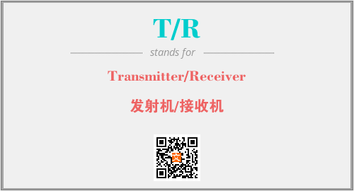 上述内容是“Transmitter/Receiver”作为“T/R”的缩写,解释为“发射机/接收机”时的信息,以及英文缩略词T/R所代表的英文单词,其对应的中文拼音、详细解释以及在英文中的流行度和相关分类、应用领域及应用示例等。