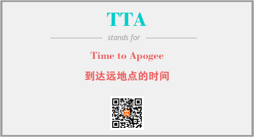 上述内容是“Time to Apogee”作为“TTA”的缩写,解释为“到达远地点的时间”时的信息,以及英文缩略词TTA所代表的英文单词,其对应的中文拼音、详细解释以及在英文中的流行度和相关分类、应用领域及应用示例等。