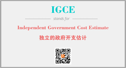 上述内容是“Independent Government Cost Estimate”作为“IGCE”的缩写,解释为“独立的政府开支估计”时的信息,以及英文缩略词IGCE所代表的英文单词,其对应的中文拼音、详细解释以及在英文中的流行度和相关分类、应用领域及应用示例等。