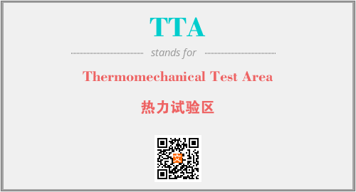 上述内容是“Thermomechanical Test Area”作为“TTA”的缩写,解释为“热力试验区”时的信息,以及英文缩略词TTA所代表的英文单词,其对应的中文拼音、详细解释以及在英文中的流行度和相关分类、应用领域及应用示例等。