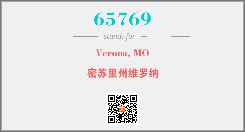 上述内容是“Verona, MO”作为“65769”的缩写,解释为“密苏里州维罗纳”时的信息,以及英文缩略词65769所代表的英文单词,其对应的中文拼音、详细解释以及在英文中的流行度和相关分类、应用领域及应用示例等。