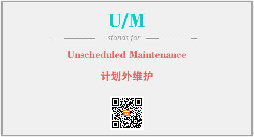 上述内容是“Unscheduled Maintenance”作为“U/M”的缩写,解释为“计划外维护”时的信息,以及英文缩略词U/M所代表的英文单词,其对应的中文拼音、详细解释以及在英文中的流行度和相关分类、应用领域及应用示例等。
