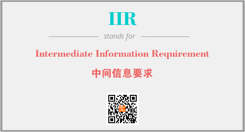 上述内容是“Intermediate Information Requirement”作为“IIR”的缩写,解释为“中间信息要求”时的信息,以及英文缩略词IIR所代表的英文单词,其对应的中文拼音、详细解释以及在英文中的流行度和相关分类、应用领域及应用示例等。