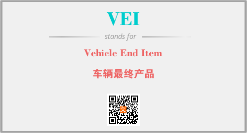 英文缩略词“VEI”经常作为“Vehicle End Item”的英文缩写来使用,中文表示:“车辆最终产品”。本文将详细介绍英文缩写词VEI所代表英文单词,其对应的中文拼音、详细解释以及在英语中的流行度。此外,还有关于缩略词VEI的分类、应用领域及相关应用示例等。