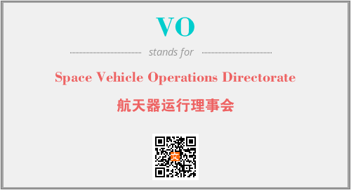 上述内容是“Space Vehicle Operations Directorate”作为“VO”的缩写,解释为“航天器运行理事会”时的信息,以及英文缩略词VO所代表的英文单词,其对应的中文拼音、详细解释以及在英文中的流行度和相关分类、应用领域及应用示例等。