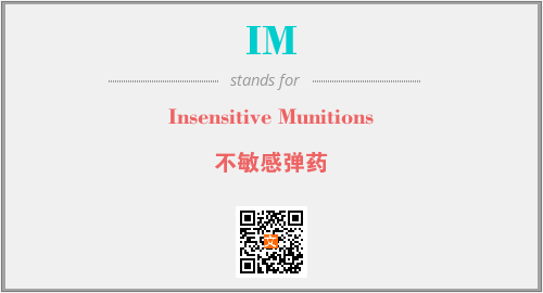 英文缩略词“IM”经常作为“Insensitive Munitions”的英文缩写来使用,中文表示:“不敏感弹药”。本文将详细介绍英文缩写词IM所代表英文单词,其对应的中文拼音、详细解释以及在英语中的流行度。此外,还有关于缩略词IM的分类、应用领域及相关应用示例等。