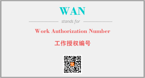 英文缩略词“WAN”经常作为“Work Authorization Number”的英文缩写来使用,中文表示:“工作授权编号”。本文将详细介绍英文缩写词WAN所代表英文单词,其对应的中文拼音、详细解释以及在英语中的流行度。此外,还有关于缩略词WAN的分类、应用领域及相关应用示例等。