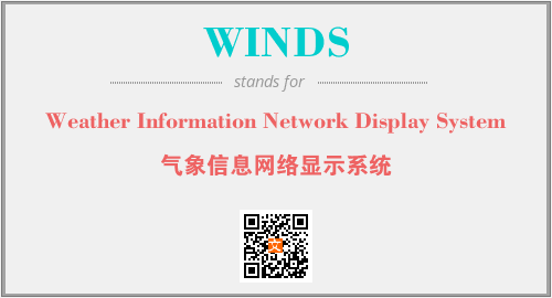 上述内容是“Weather Information Network Display System”作为“WINDS”的缩写,解释为“气象信息网络显示系统”时的信息,以及英文缩略词WINDS所代表的英文单词,其对应的中文拼音、详细解释以及在英文中的流行度和相关分类、应用领域及应用示例等。