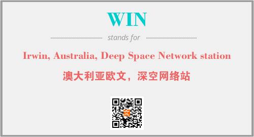 上述内容是“Irwin, Australia, Deep Space Network station”作为“WIN”的缩写,解释为“澳大利亚欧文,深空网络站”时的信息,以及英文缩略词WIN所代表的英文单词,其对应的中文拼音、详细解释以及在英文中的流行度和相关分类、应用领域及应用示例等。