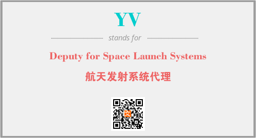 上述内容是“Deputy for Space Launch Systems”作为“YV”的缩写,解释为“航天发射系统代理”时的信息,以及英文缩略词YV所代表的英文单词,其对应的中文拼音、详细解释以及在英文中的流行度和相关分类、应用领域及应用示例等。