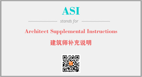 英文缩略词“ASI”经常作为“Architect Supplemental Instructions”的英文缩写来使用,中文表示:“建筑师补充说明”。本文将详细介绍英文缩写词ASI所代表英文单词,其对应的中文拼音、详细解释以及在英语中的流行度。此外,还有关于缩略词ASI的分类、应用领域及相关应用示例等。