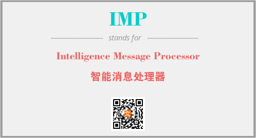 上述内容是“Intelligence Message Processor”作为“IMP”的缩写,解释为“智能消息处理器”时的信息,以及英文缩略词IMP所代表的英文单词,其对应的中文拼音、详细解释以及在英文中的流行度和相关分类、应用领域及应用示例等。