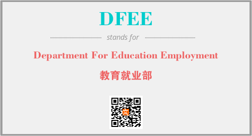 上述内容是“Department For Education Employment”作为“DFEE”的缩写,解释为“教育就业部”时的信息,以及英文缩略词DFEE所代表的英文单词,其对应的中文拼音、详细解释以及在英文中的流行度和相关分类、应用领域及应用示例等。