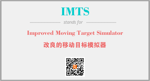 英文缩略词“IMTS”经常作为“Improved Moving Target Simulator”的英文缩写来使用,中文表示:“改良的移动目标模拟器”。本文将详细介绍英文缩写词IMTS所代表英文单词,其对应的中文拼音、详细解释以及在英语中的流行度。此外,还有关于缩略词IMTS的分类、应用领域及相关应用示例等。