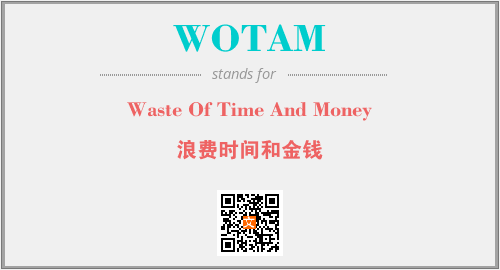 英文缩略词“WOTAM”经常作为“Waste Of Time And Money”的英文缩写来使用,中文表示:“浪费时间和金钱”。本文将详细介绍英文缩写词WOTAM所代表英文单词,其对应的中文拼音、详细解释以及在英语中的流行度。此外,还有关于缩略词WOTAM的分类、应用领域及相关应用示例等。