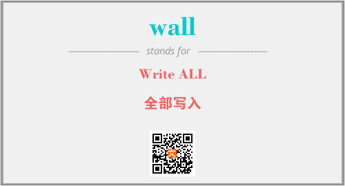 上述内容是“Write ALL”作为“wall”的缩写,解释为“全部写入”时的信息,以及英文缩略词wall所代表的英文单词,其对应的中文拼音、详细解释以及在英文中的流行度和相关分类、应用领域及应用示例等。