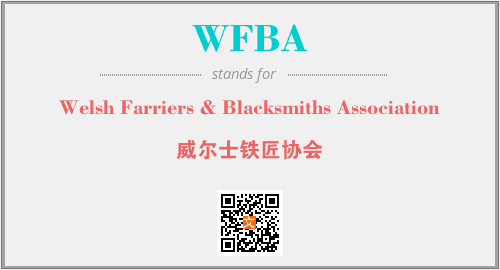上述内容是“Welsh Farriers & Blacksmiths Association”作为“WFBA”的缩写,解释为“威尔士铁匠协会”时的信息,以及英文缩略词WFBA所代表的英文单词,其对应的中文拼音、详细解释以及在英文中的流行度和相关分类、应用领域及应用示例等。