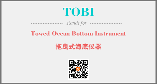 上述内容是“Towed Ocean Bottom Instrument”作为“TOBI”的缩写,解释为“拖曳式海底仪器”时的信息,以及英文缩略词TOBI所代表的英文单词,其对应的中文拼音、详细解释以及在英文中的流行度和相关分类、应用领域及应用示例等。