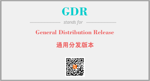 英文缩略词“GDR”经常作为“General Distribution Release”的英文缩写来使用,中文表示:“通用分发版本”。本文将详细介绍英文缩写词GDR所代表英文单词,其对应的中文拼音、详细解释以及在英语中的流行度。此外,还有关于缩略词GDR的分类、应用领域及相关应用示例等。