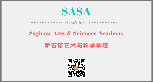 上述内容是“Saginaw Arts & Sciences Academy”作为“SASA”的缩写,解释为“萨吉诺艺术与科学学院”时的信息,以及英文缩略词SASA所代表的英文单词,其对应的中文拼音、详细解释以及在英文中的流行度和相关分类、应用领域及应用示例等。