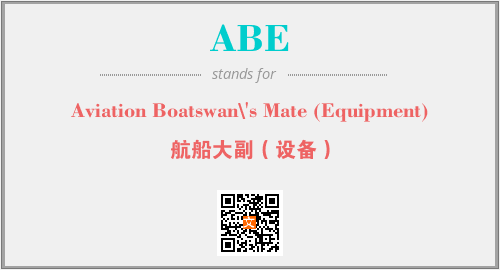 英文缩略词“ABE”经常作为“Aviation Boatswan\'s Mate (Equipment)”的英文缩写来使用,中文表示:“航船大副(设备)”。本文将详细介绍英文缩写词ABE所代表英文单词,其对应的中文拼音、详细解释以及在英语中的流行度。此外,还有关于缩略词ABE的分类、应用领域及相关应用示例等。