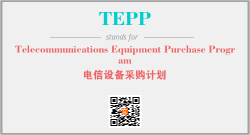 上述内容是“Telecommunications Equipment Purchase Program”作为“TEPP”的缩写,解释为“电信设备采购计划”时的信息,以及英文缩略词TEPP所代表的英文单词,其对应的中文拼音、详细解释以及在英文中的流行度和相关分类、应用领域及应用示例等。