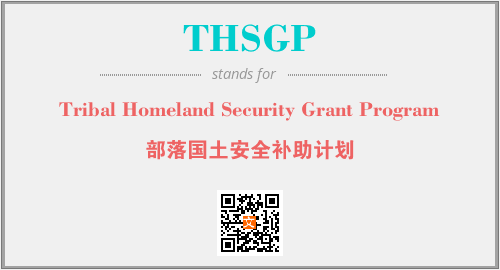 上述内容是“Tribal Homeland Security Grant Program”作为“THSGP”的缩写,解释为“部落国土安全补助计划”时的信息,以及英文缩略词THSGP所代表的英文单词,其对应的中文拼音、详细解释以及在英文中的流行度和相关分类、应用领域及应用示例等。