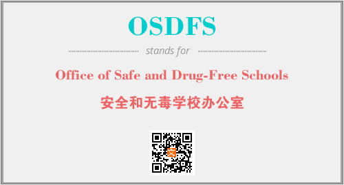 上述内容是“Office of Safe and Drug-Free Schools”作为“OSDFS”的缩写,解释为“安全和无毒学校办公室”时的信息,以及英文缩略词OSDFS所代表的英文单词,其对应的中文拼音、详细解释以及在英文中的流行度和相关分类、应用领域及应用示例等。