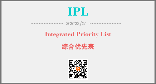 英文缩略词“IPL”经常作为“Integrated Priority List”的英文缩写来使用,中文表示:“综合优先表”。本文将详细介绍英文缩写词IPL所代表英文单词,其对应的中文拼音、详细解释以及在英语中的流行度。此外,还有关于缩略词IPL的分类、应用领域及相关应用示例等。