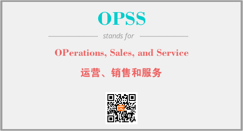 英文缩略词“OPSS”经常作为“OPerations, Sales, and Service”的英文缩写来使用,中文表示:“运营、销售和服务”。本文将详细介绍英文缩写词OPSS所代表英文单词,其对应的中文拼音、详细解释以及在英语中的流行度。此外,还有关于缩略词OPSS的分类、应用领域及相关应用示例等。