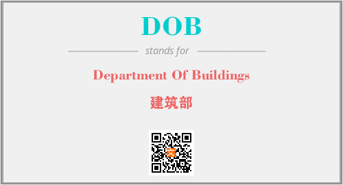英文缩略词“DOB”经常作为“Department Of Buildings”的英文缩写来使用,中文表示:“建筑部”。本文将详细介绍英文缩写词DOB所代表英文单词,其对应的中文拼音、详细解释以及在英语中的流行度。此外,还有关于缩略词DOB的分类、应用领域及相关应用示例等。