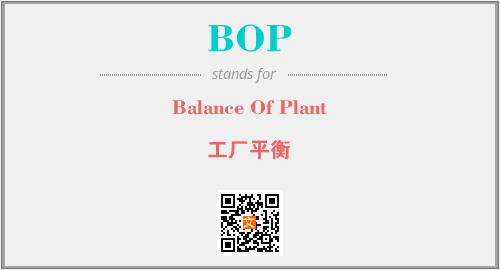 上述内容是“Balance Of Plant”作为“BOP”的缩写,解释为“工厂平衡”时的信息,以及英文缩略词BOP所代表的英文单词,其对应的中文拼音、详细解释以及在英文中的流行度和相关分类、应用领域及应用示例等。
