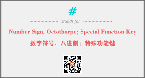 英文缩略词“#”经常作为“Number Sign, Octothorpe; Special Function Key”的英文缩写来使用,中文表示:“数字符号,八进制;特殊功能键”。本文将详细介绍英文缩写词#所代表英文单词,其对应的中文拼音、详细解释以及在英语中的流行度。此外,还有关于缩略词#的分类、应用领域及相关应用示例等。
