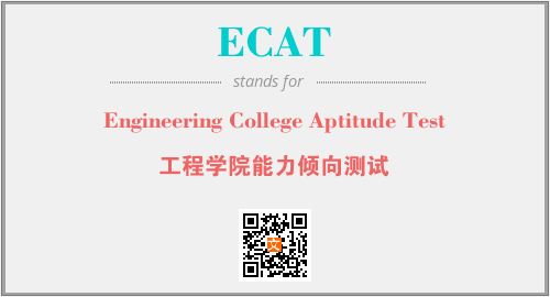 上述内容是“Engineering College Aptitude Test”作为“ECAT”的缩写,解释为“工程学院能力倾向测试”时的信息,以及英文缩略词ECAT所代表的英文单词,其对应的中文拼音、详细解释以及在英文中的流行度和相关分类、应用领域及应用示例等。