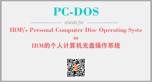 上述内容是“IBM\'s Personal Computer Disc Operating System”作为“PC-DOS”的缩写,解释为“IBM的个人计算机光盘操作系统”时的信息,以及英文缩略词PC-DOS所代表的英文单词,其对应的中文拼音、详细解释以及在英文中的流行度和相关分类、应用领域及应用示例等。