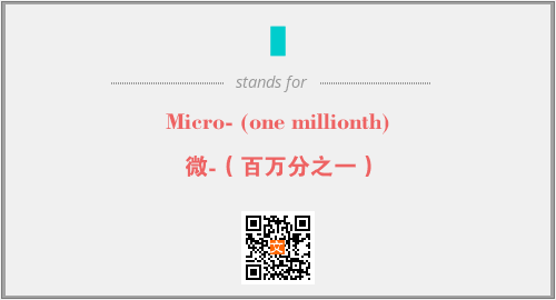 英文缩略词“µ”经常作为“Micro- (one millionth)”的英文缩写来使用,中文表示:“微-(百万分之一)”。本文将详细介绍英文缩写词µ所代表英文单词,其对应的中文拼音、详细解释以及在英语中的流行度。此外,还有关于缩略词µ的分类、应用领域及相关应用示例等。