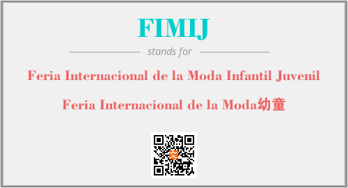 上述内容是“Feria Internacional de la Moda Infantil Juvenil”作为“FIMIJ”的缩写,解释为“Feria Internacional de la Moda幼童”时的信息,以及英文缩略词FIMIJ所代表的英文单词,其对应的中文拼音、详细解释以及在英文中的流行度和相关分类、应用领域及应用示例等。