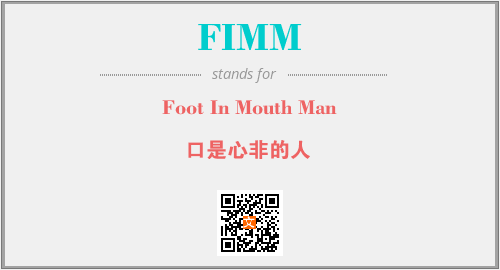英文缩略词“FIMM”经常作为“Foot In Mouth Man”的英文缩写来使用,中文表示:“口是心非的人”。本文将详细介绍英文缩写词FIMM所代表英文单词,其对应的中文拼音、详细解释以及在英语中的流行度。此外,还有关于缩略词FIMM的分类、应用领域及相关应用示例等。