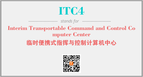英文缩略词“ITC4”经常作为“Interim Transportable Command and Control Computer Center”的英文缩写来使用,中文表示:“临时便携式指挥与控制计算机中心”。本文将详细介绍英文缩写词ITC4所代表英文单词,其对应的中文拼音、详细解释以及在英语中的流行度。此外,还有关于缩略词ITC4的分类、应用领域及相关应用示例等。