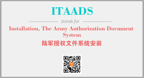 上述内容是“Installation, The Army Authorization Document System”作为“ITAADS”的缩写,解释为“陆军授权文件系统安装”时的信息,以及英文缩略词ITAADS所代表的英文单词,其对应的中文拼音、详细解释以及在英文中的流行度和相关分类、应用领域及应用示例等。