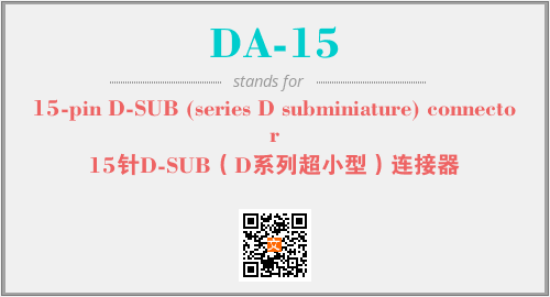 英文缩略词“DA-15”经常作为“15-pin D-SUB (series D subminiature) connector”的英文缩写来使用,中文表示:“15针D-SUB(D系列超小型)连接器”。本文将详细介绍英文缩写词DA-15所代表英文单词,其对应的中文拼音、详细解释以及在英语中的流行度。此外,还有关于缩略词DA-15的分类、应用领域及相关应用示例等。