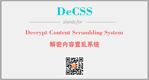 上述内容是“Decrypt Content Scrambling System”作为“DeCSS”的缩写,解释为“解密内容置乱系统”时的信息,以及英文缩略词DeCSS所代表的英文单词,其对应的中文拼音、详细解释以及在英文中的流行度和相关分类、应用领域及应用示例等。