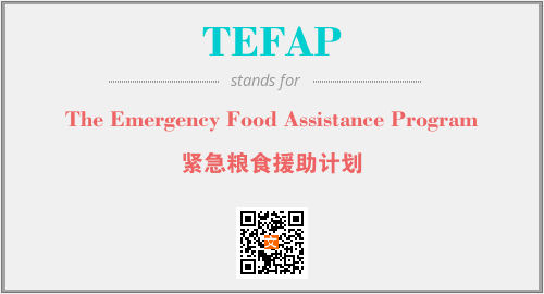 英文缩略词“TEFAP”经常作为“The Emergency Food Assistance Program”的英文缩写来使用,中文表示:“紧急粮食援助计划”。本文将详细介绍英文缩写词TEFAP所代表英文单词,其对应的中文拼音、详细解释以及在英语中的流行度。此外,还有关于缩略词TEFAP的分类、应用领域及相关应用示例等。