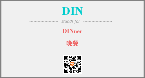 英文缩略词“DIN”经常作为“DINner”的英文缩写来使用,中文表示:“晚餐”。本文将详细介绍英文缩写词DIN所代表英文单词,其对应的中文拼音、详细解释以及在英语中的流行度。此外,还有关于缩略词DIN的分类、应用领域及相关应用示例等。